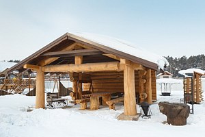 В распоряжении отдыхающих на территории удобная автопарковка, мангалы с дровами для приготовления вкуснейших шашлыков, детский городок для маленьких исследователей, а также волейбольная и футбольная площадки. Есть всё для активного отдыха и весёлых игр! Для общения с друзьями и близкими предлагаются уютные беседки, где можно насладиться прекрасной атмосферой задушевных встреч. Также на территории оборудованы четыре бани, в которых можно расслабиться после активного дня, и горячая купель.