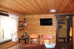 В бане телевизор, чайник, кружки для чаепития. В стоимость включены мангал, дрова.