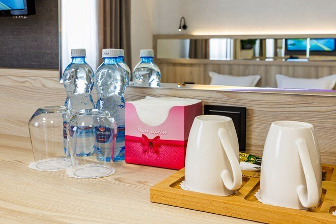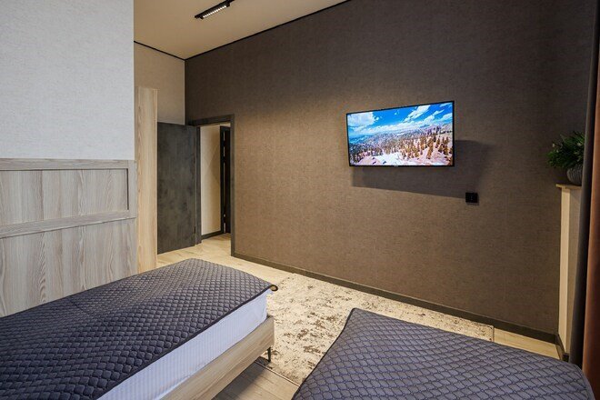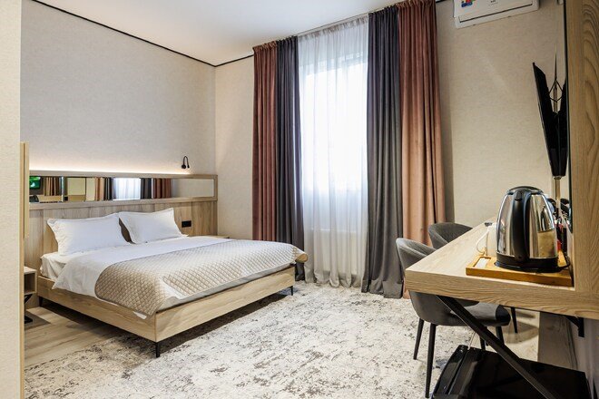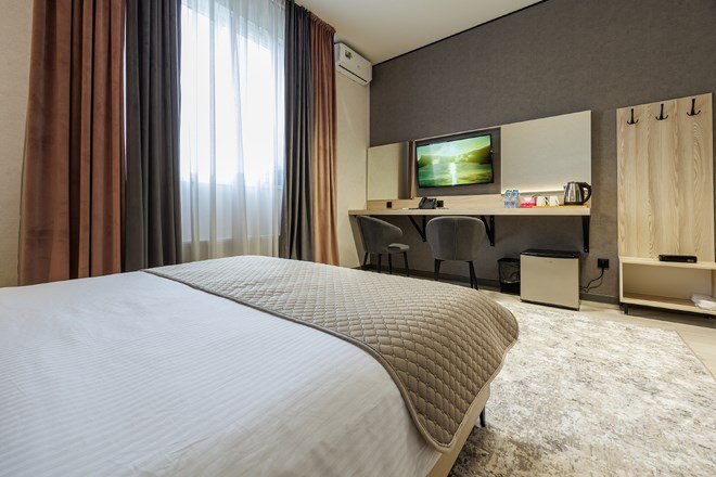 Однокомнатный номер с двумя отдельными кроватями, оформленный в современном стиле, оснащен по европейским стандартамУслуги и удобства