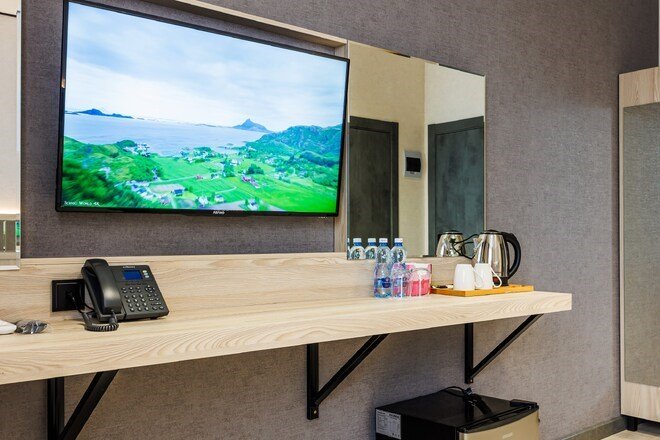В номере вы найдёте телевизор. Перечисленные услуги есть не во всех номерах.