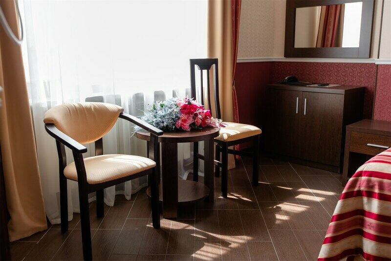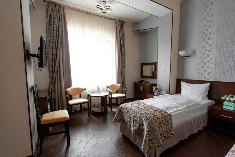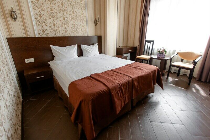Путешествие с паройРекомендуюГостили здесь одну ночь. Отель очень понравился - номер просторный, все чисто-уютно, персонал приветлив. Жёсткая удобная кровать. Есть комната с большим холодильником и микроволновкой. До курортного парка 10мин ходьбы. До парка победы ещё ближе. Парковка перед входом имеется. В данном случае качество выше цены.