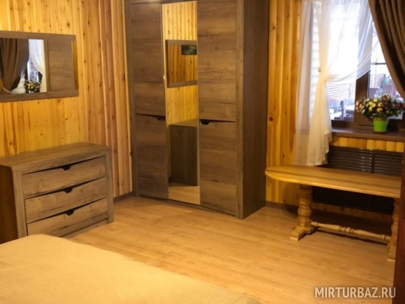 - двуспальная кровать, диван-кровать, стулья, шкаф, прикроватные тумбочки, стол, комод, прихожая, вешалка, зеркало, обеденная зона.