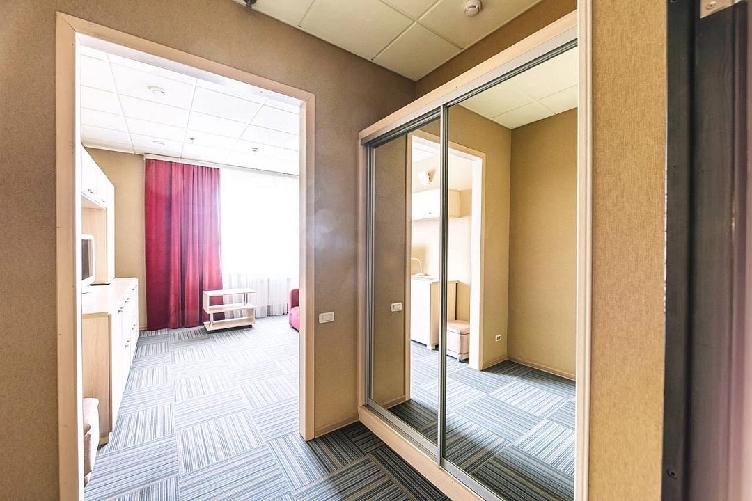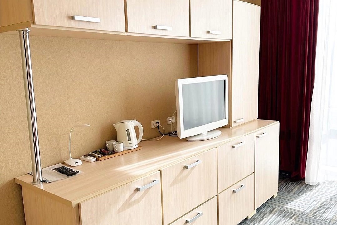 Комфортабельный классический стандартный номер для отличного отдыха. Номер удобен для семейного или командировочного размещения. Просторный номер с панорамными окнами и видом на город или парк. Просторная спальня гостиная с кроватями на выбор: две односпальные или одна большая кровать. В номере к услугам гостей : спутниковое телевидение; беспроводной Интернет; кондиционер; приборы для управления освещением и доступом в номер; телефон (для поддержания связи с обслуживающим персоналом); сейф; холодильник; набор посуды. Также в номере есть зона отдыха с журнальным столиком и креслами, шкаф - гардероб для одежды, фен, чайник.Услуги и удобства