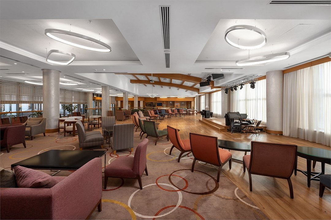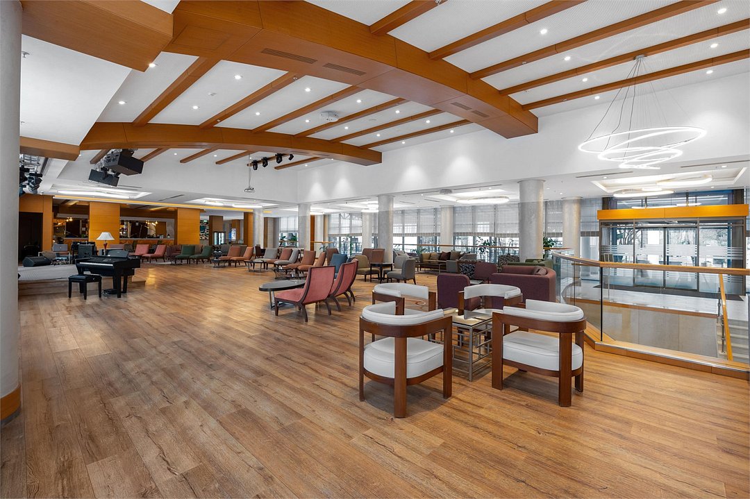 После дневных процедур здесь предлагают витаминные и минеральные коктейли, холодные и горячие напитки, десерты. Это идеальное место отдыха, приятной беседы за аперитивом или чашечкой кофе. В ассортименте лобби бара представлены закуски, десерты и безалкогольные напитки.