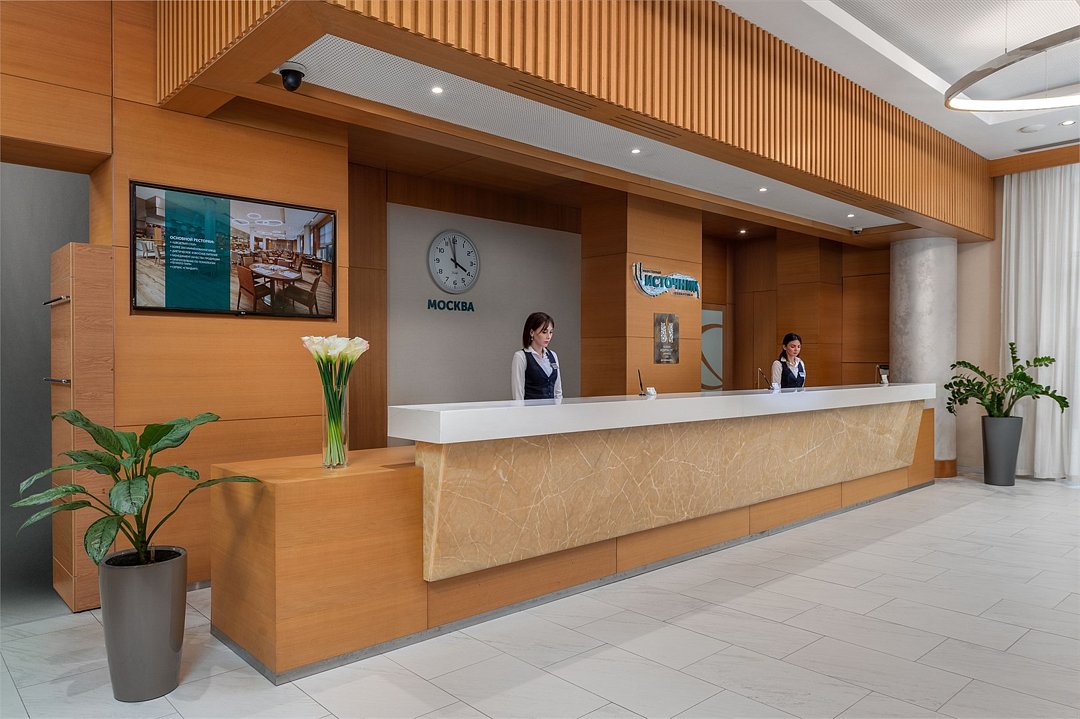 Путешествие с семьейПрекрасное место отдыхаОтдыхали в санатории «Источник» в Ессентуках семьей (три взрослых человека), жили в номере категории Люкс. Номером очень довольны: огромные две комнаты, нам повезло - номер был крайний на этаже в корпусе D. Звукоизоляция отличная, это для нас важно, потому что был негативный опыт в семейном номере в санатории «Русь», где кажется, что стен нет вообще. К уборке вопросов тоже нет - постель меняли через день, полотенца также меняли часто, докладывали вовремя косметику и воду/чай. В санатории прекрасные скоростные лифты. Мало отдыхающих с детьми, значит, нет беготни и криков. Медицинское обслуживание - вежливый персонал, процедуры отпускаются вовремя, нет очередей на процедуры, все четко. Питание: здесь есть, к чему придраться и надеяться на улучшения. Мы питались в vip зале как проживающие в люксе. Зал похож на проходной двор - нет контроля за посетителями, туда за едой и кофе ходят люди из общего зала, что странно. За горячим надо ходить в общий зал, стоять в очереди на раздаче. Надо бы ограничить проход в vip зал, посадив туда администратора, как например, сделано в «Руси». Раздачу горячих блюд можно в vip зале также сделать, место для этого есть. В принципе, vip зал отличается только наличием белых скатертей и свежевыжатым соком. Супы и горячие блюда горячие только в первые десять минут после начала обеда или ужина. Заметив это, люди все стараются ходить к открытию и создают очереди. Отдельно про приборы - есть только ложка, вилка и нож на столе. Дополнительных приборов нет, то есть одной вилкой приходится есть основную еду, фрукты и десерт. Желательно разместить на раздаче лоток с приборами. Хотелось бы также, чтобы были какие-то минимальные требования к внешнему виду гостей в столовой - надоели уже повсеместно спортивные костюмы, треники и шлепки. Особенно в vip зале на фоне белых скатертей смотрится дико. Лобби бар: полностью отсутствует алкоголь, понятно, что санаторий это лечебное учреждение, но хотя бы разрешить пиво и вино можно было бы. Мы видели, как отдыхающие с собой приносили бутылки на вечерние программы. В целом, отдых очень понравился, с удовольствием приедем ещё!