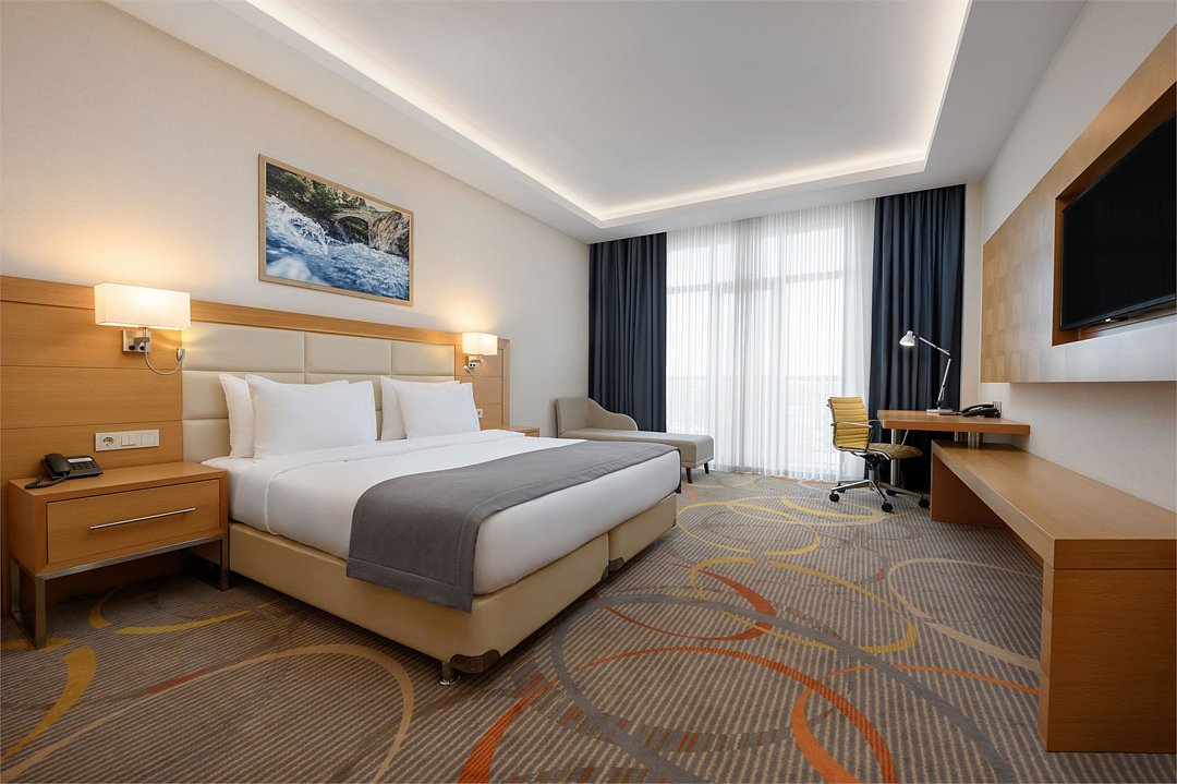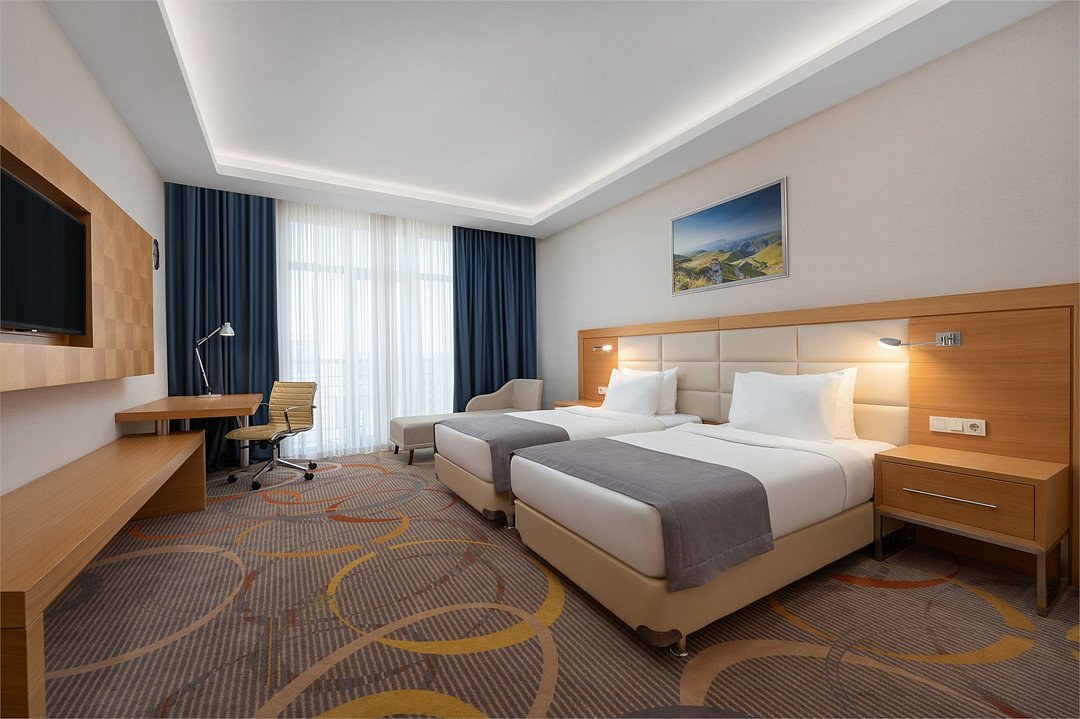 В двух корпусах санатория расположены 222 номера различной категории. Лечению и диагностике отведен масштабный медицинский корпус. В санатории «Источник» предусмотрено все для Вашего комфортного отдыха и квалифицированного курортного лечения - бассейн, собственный бювет, обеденные залы «шведская линия», лобби бар с летней террасой, фитнес-зал, детский клуб, бильярдная, анимационно-развлекательные площадки, малый и большой конференц-залы.