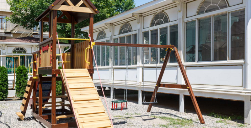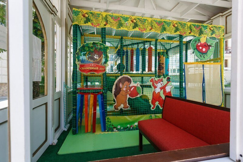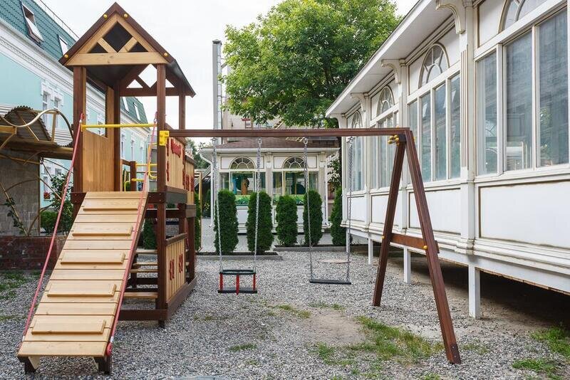 Для детей на территории созданы прекрасные условия для активного отдыха. Они могут играть в любую погоду на крытой детской площадке, качаться на качелях, кататься с горок или прыгать на безопасном детском батуте.