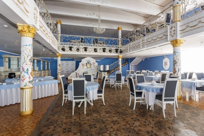 Зал выполненный в изысканном стиле арабески на 150 посадочных мест поможет вам провести мероприятия разного характера: дни рождения, свадьбы, корпоративы, презентации, конференции.