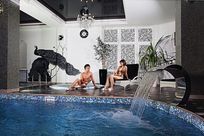 Плавательный бассейн с водопадом расположен в спа-центре отеля.