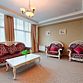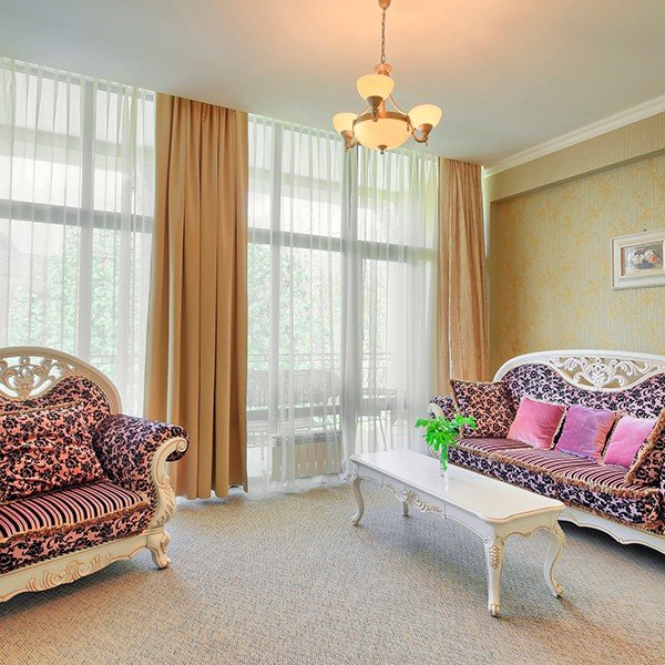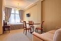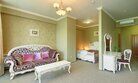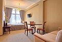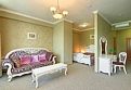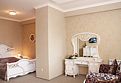 Номер состоит из спальни и гостиной, с большой семейной кроватью. Уютный интерьер, мебель в классическом стиле.