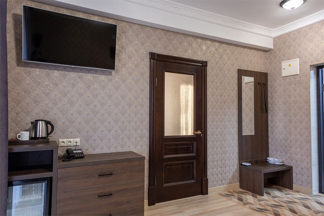 два телевизора, Wi-Fi, интернет, холодильник, кондиционер, фен, будильник, электронные замки, утюг, гидромассажная ванна, санузел, банные принадлежности, халаты, банные полотенца, тапочки, гигиенические средства, балкон, двуспальная кровать, односпальная кровать, гладильная доска, диван, стулья, вешалки, багажная тумба, зеркало, чайный набор, набор посуды, обслуживание номеров, сейф, чайник, унитаз, раковина, питьевая вода, отопление, душ, вид на город, плиточное покрытие, вид во двор, высокие потолки, стаканы, стул, стол, тумба, туалет, вид на парк, цифровое тв, диван-кровать, внутренний телефон, телевизор с плоским экраном, мини-холодильник, москитная сетка, телевизор со Smart TV, номер для некурящих, чайная станцияВ гостиничном номере
