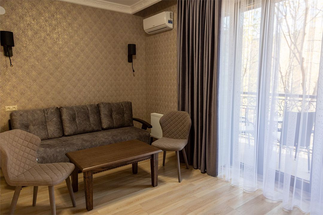 ДВУХКОМНАТНЫЙ 2Х-МЕСТНЫЙ LUXE С БАЛКОНОМ Площадь 40 кв. м. Максимальное размещение: до 4 гостей. Доп. место –диван-кровать В номере: 1 двуспальная кровать, диван-кровать, 2 телевизора и спутниковое ТВ, сейф, душ, туалет, ванные и косметические принадлежности, фен, 3 полотенца на гостя, тапочки, холодильник, 2 кондиционера, 1 балкон с мебелью, Wi-Fi.Услуги и удобства
