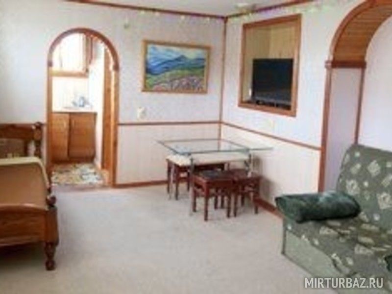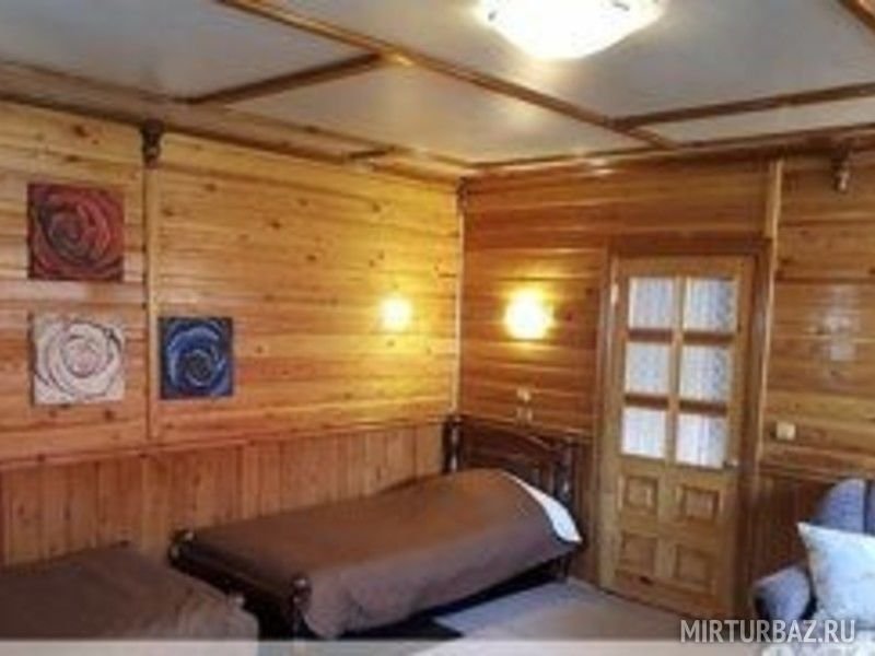 Отдельный домик на 2м этаже. Большая уютная комната с 2мя односпальными кроватями и 2мя раскладными креслами.Мини-кухня и санузел в номере.