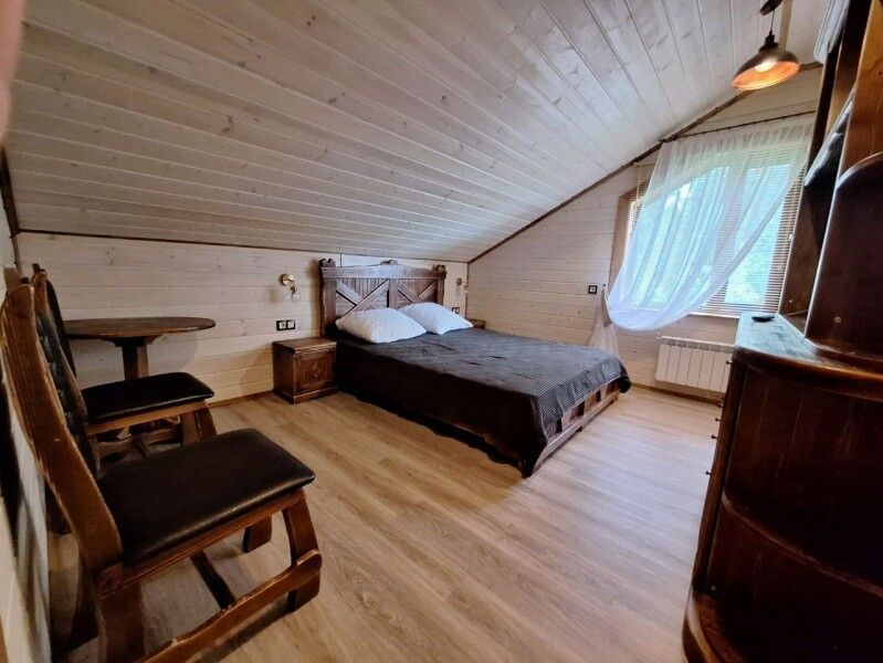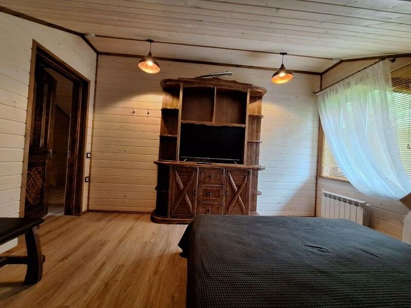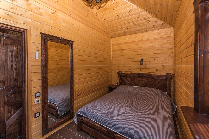 4-х местный дом. 2 спальни и 3 спальных места на кроватях из дерева ручной работы.