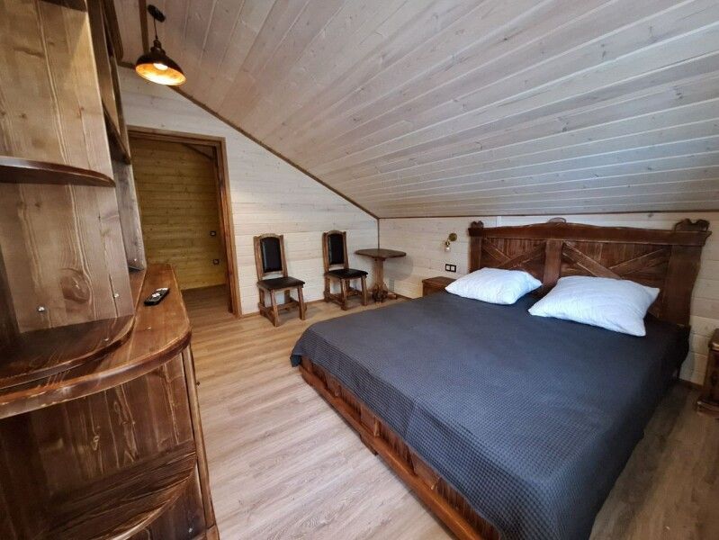 Здесь вас ожидают семь комфортабельных деревянных домов, оформленных в современном стиле, создающих атмосферу уединения и расслабления на лоне природы. Каждый дом оборудован всеми необходимыми удобствами: просторными спальнями, полностью укомплектованной кухней и домашним уютом.