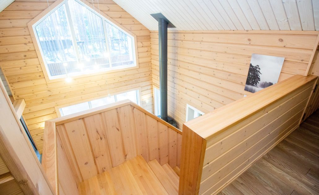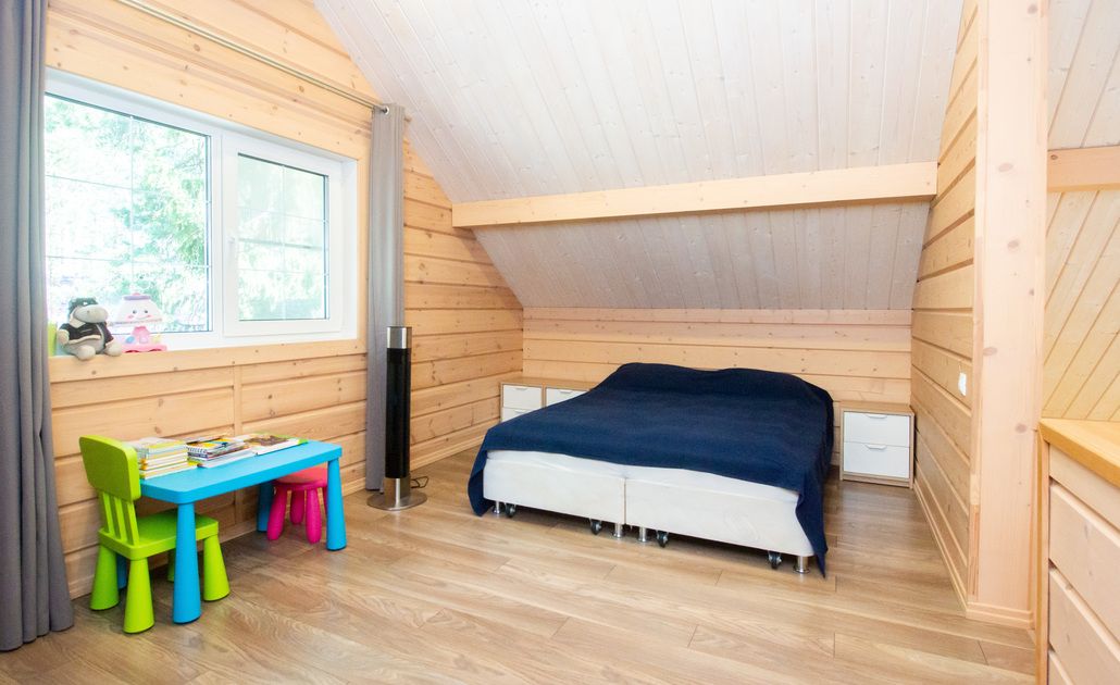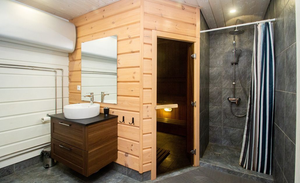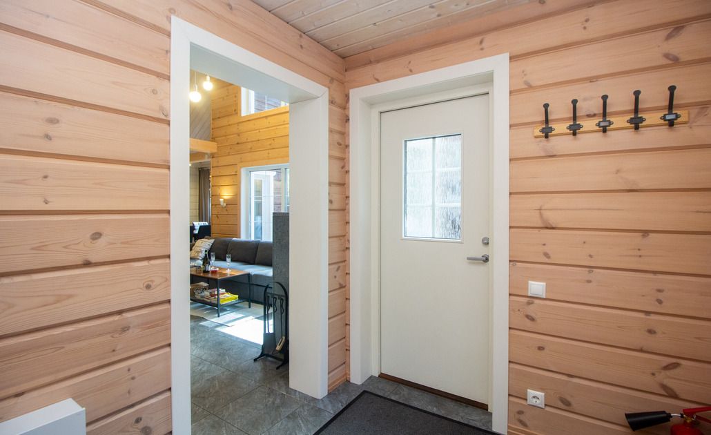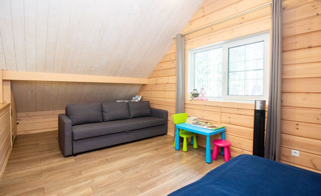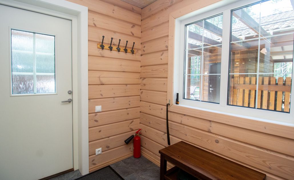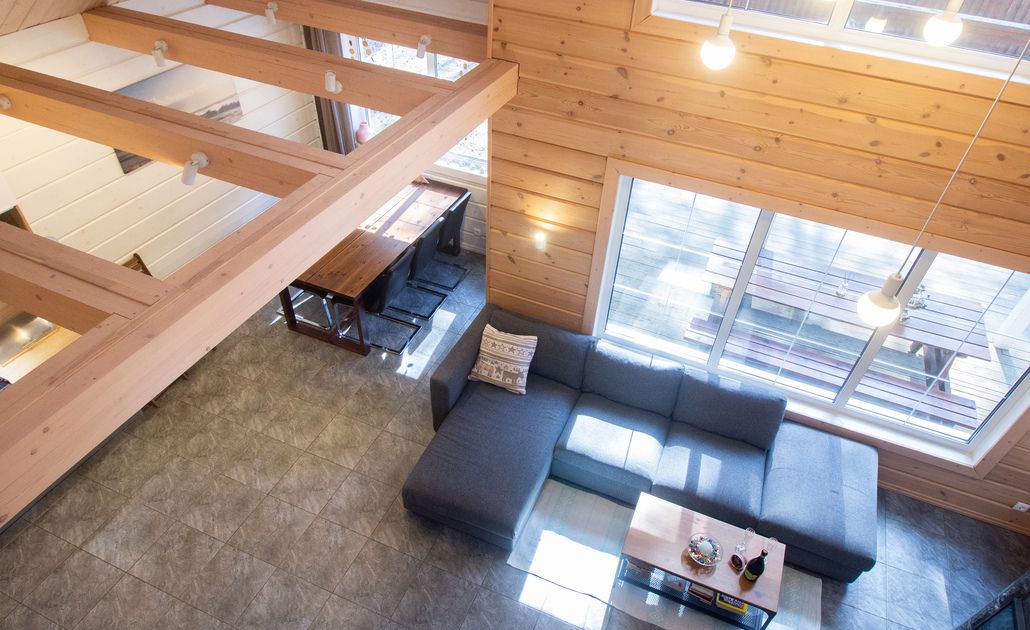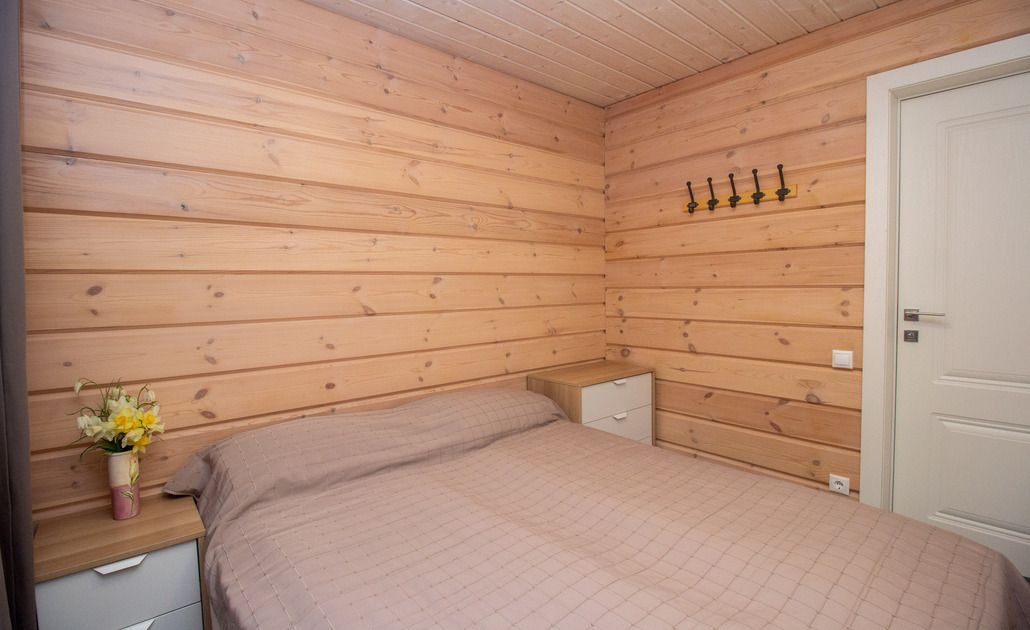 Дом с тремя спальнями (максимальное количество спальных мест — 8), гостиной с кухней и камином, сауной и санузлом на первом этаже.
