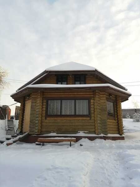 Двухэтажный дом с верандой из бревна с большой печкой и камином, расположен на окраине леса, непосредственно у воды с собственным причалом.