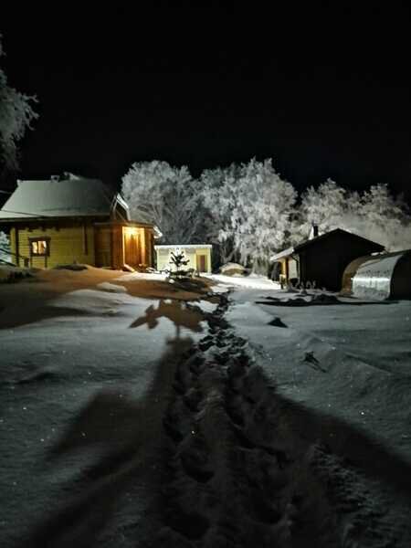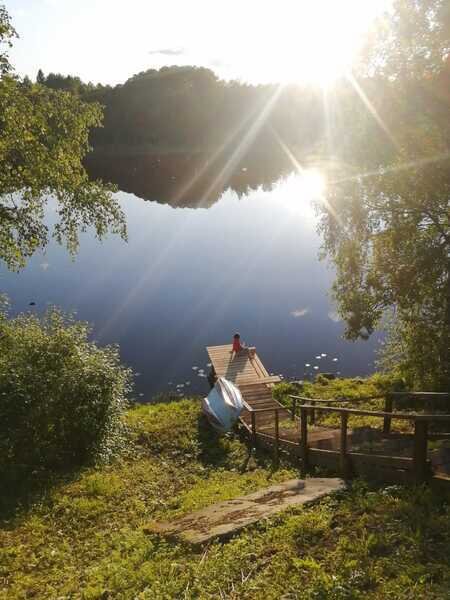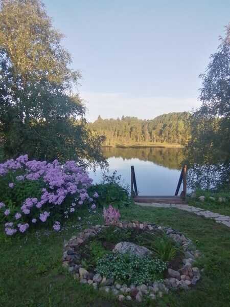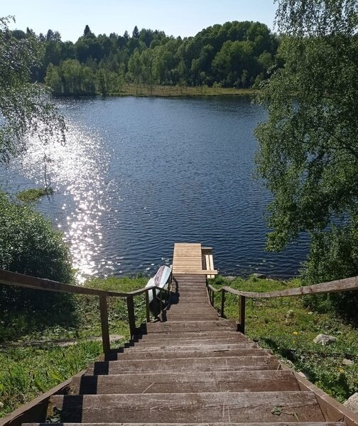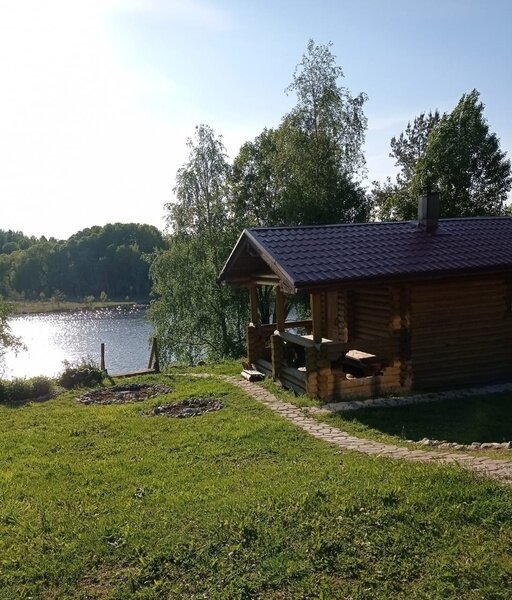 На окраине леса на берегу озера расположились деревянные дома: дом с печью-камином, дом с кроватью-чердаком, дом с сауной, баня и чан. В уединенном месте, без лишних глаз и соседей.