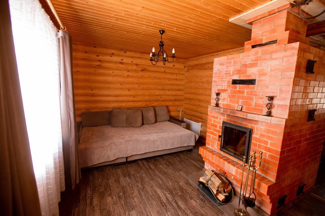 гостевой дом из бревна с большой печкой и камином, расположен на территории 30 кв. м., на окраине леса, непосредственно у воды с собственным причалом.