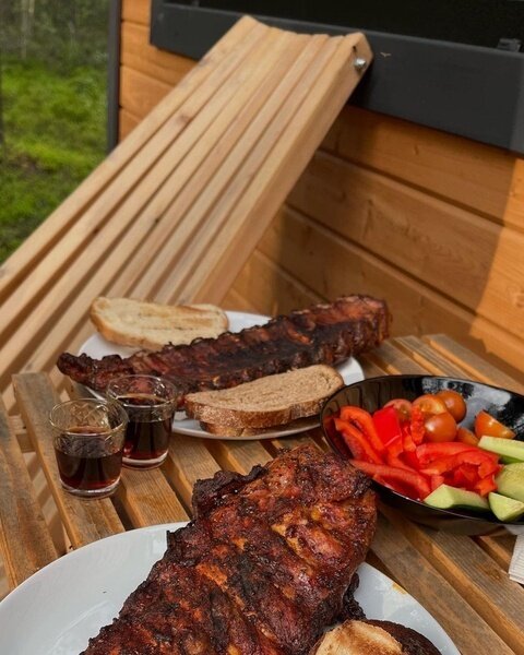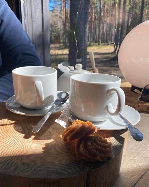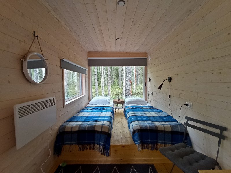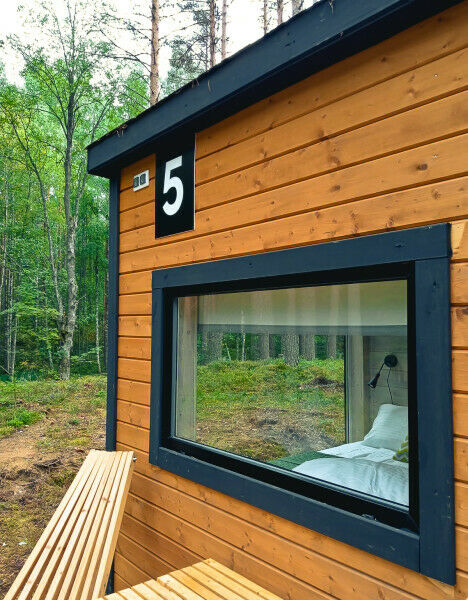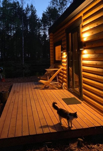 На кухне вы сможете приготовить еду и напитки, продукты можно купить в магазине в поселке Эссойла в 2 км от глэмпинга. В доме комфортно размещаются от 4 до 6 человек.