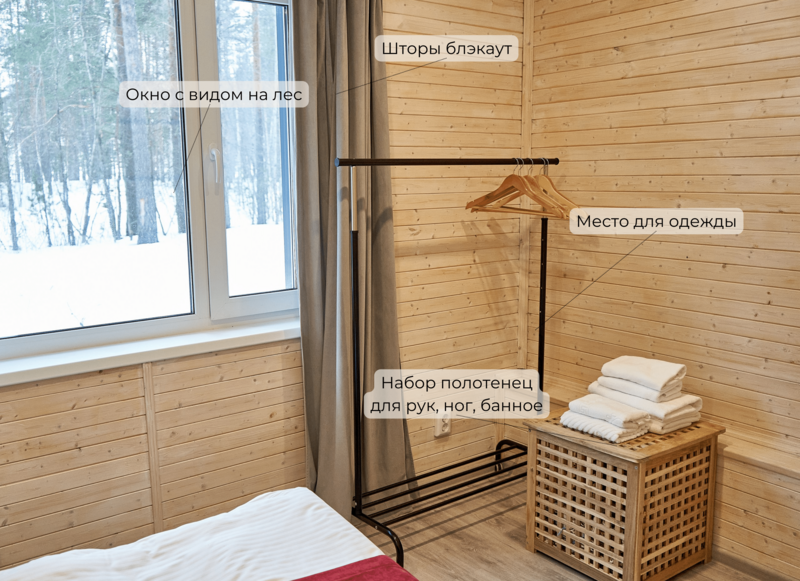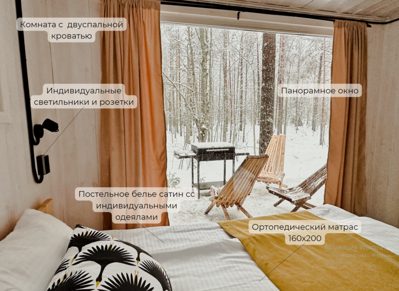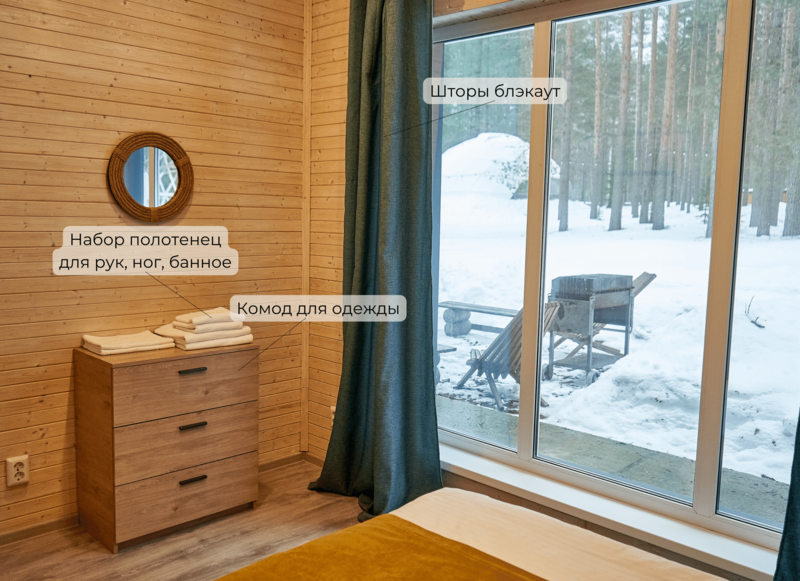 - Разрешается пребывание в домике для 1-2 человек с домашними животными (высота холки не более 70 см).