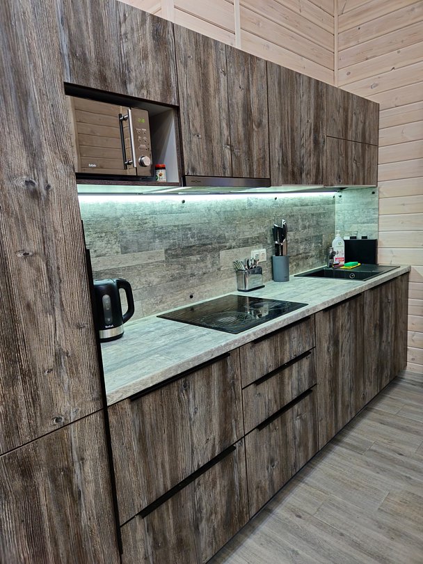 В доме есть комфортабельная кухня-студия с холодильником, посудомоечной машиной, плитой, вытяжкой, микроволновой печью и полным набором кухонной утвари. Дом отапливается теплыми полами, есть Wi-Fi.