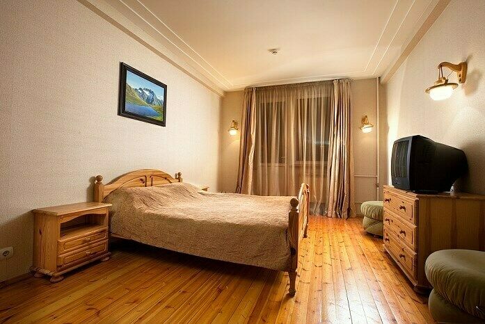 Номер с двумя односпальными или одной двуспальной кроватью, с телевизором и санузлом
