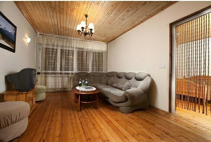 Двухкомнатный «Люкс» мансардного типа с двуспальной кроватью, мягкой мебелью, телевизором и санузлом