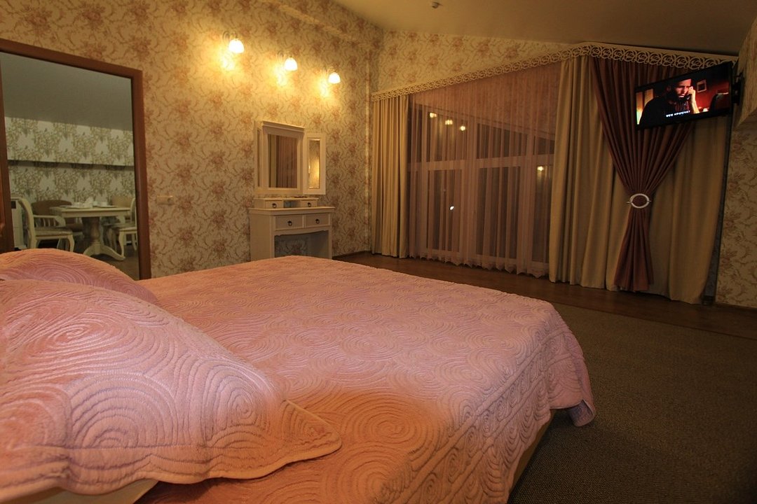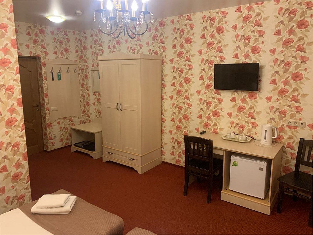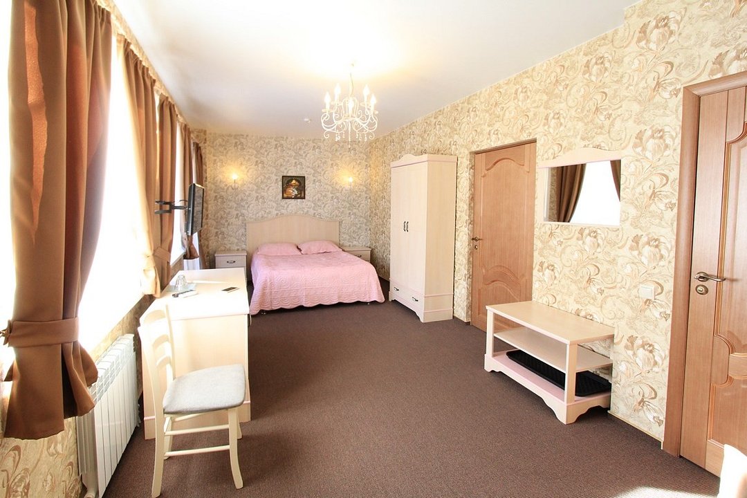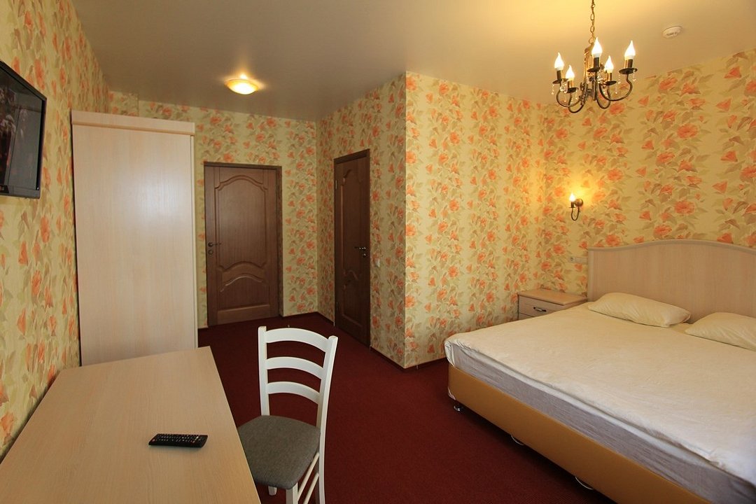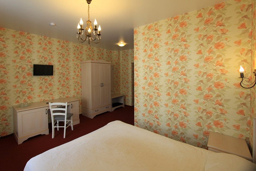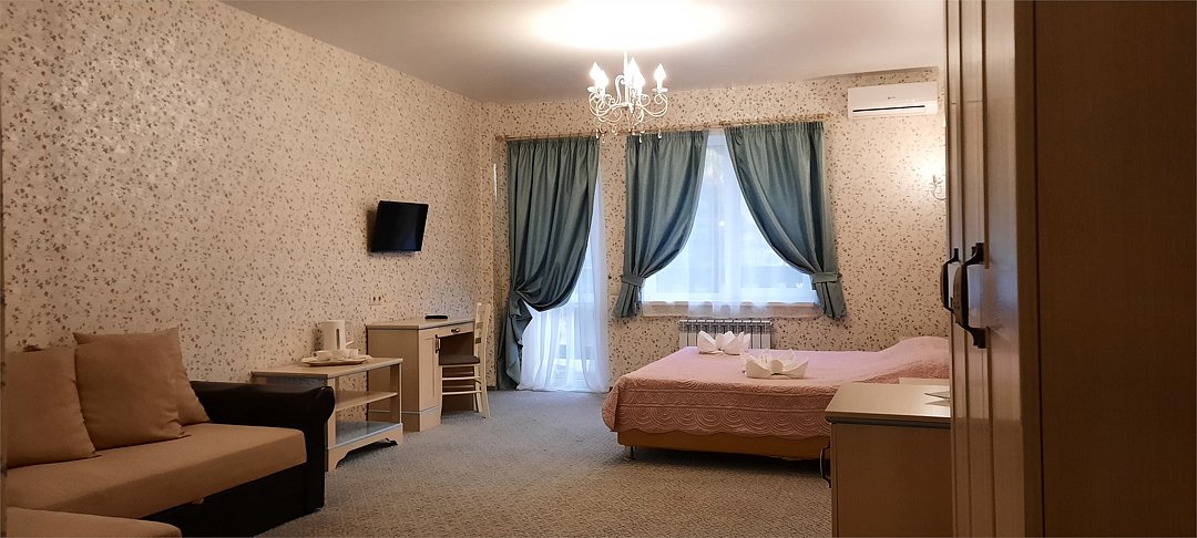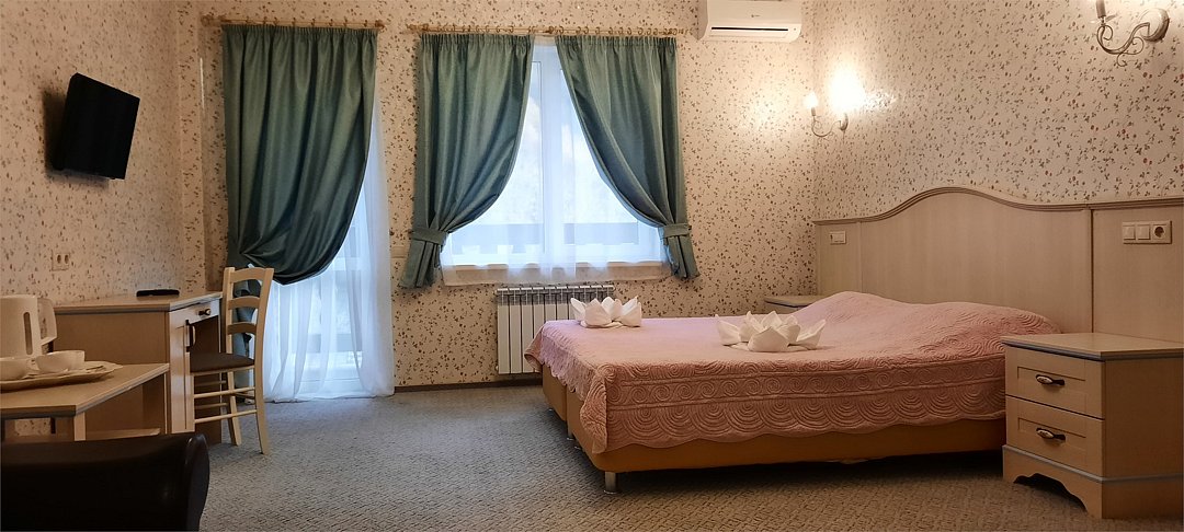 Номер категории Люкс : санузел в номере, имеются номера с ванной (под запрос), размещение: одна двуспальная кровать или две односпальные (под запрос), номер имеет балкон, 2 этаж.Услуги и удобства