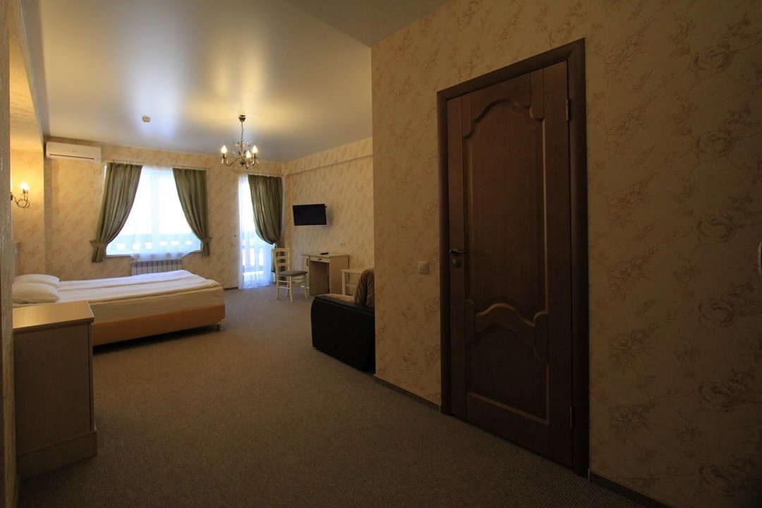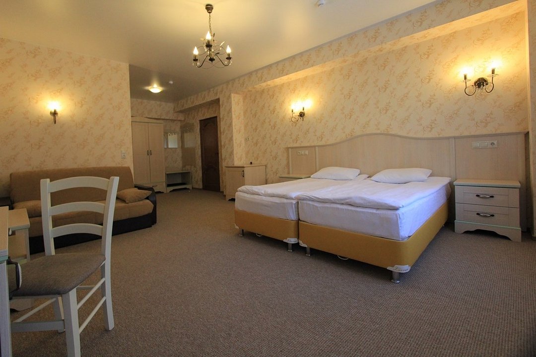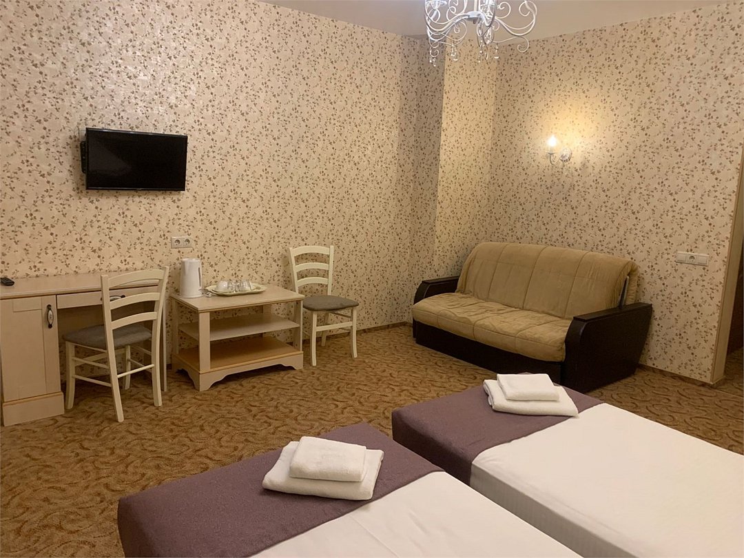 Трехместный номер: санузел в номере, имеются номера с балконами (под запрос), размещение: одна двуспальная кровать+ диван-кровать или две односпальные кровати+ диван-кровать (под запрос)Двухкомнатный-четырехместный Премиум