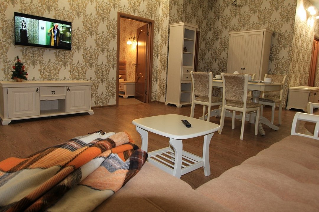 Апартаменты: две спальни, зал для отдыха с мини-кухней и обеденной зоной. (плиты-нет! есть микроволновая печь)Услуги и удобства