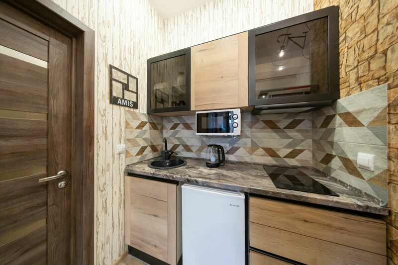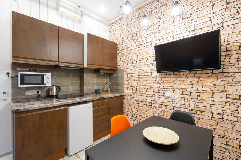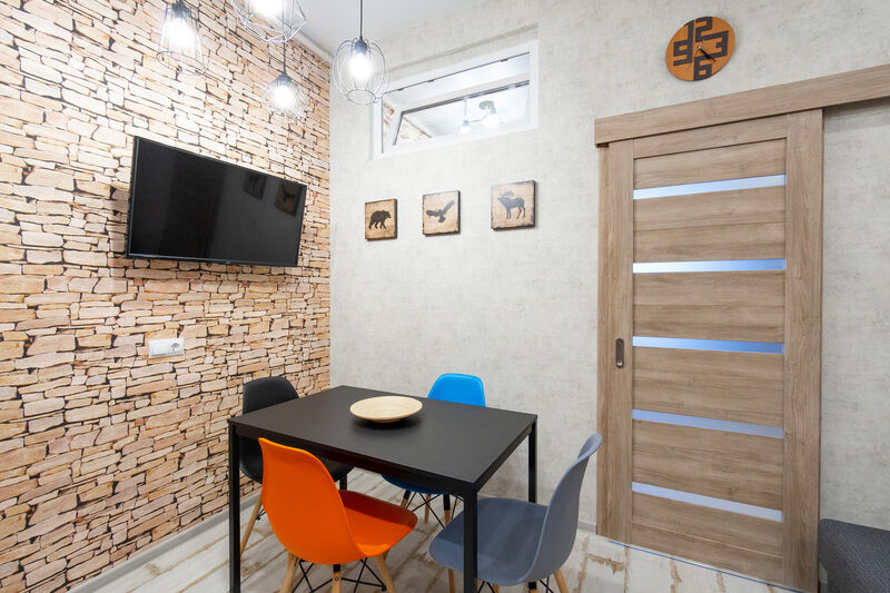 Есть всё для комфортного проживания: современное кухонное оборудование, набор посуды и столовых приборов, качественная сантехника. Уборка перед Вашим заселением, постельное белье и полотенца уже включены в стоимость проживания.