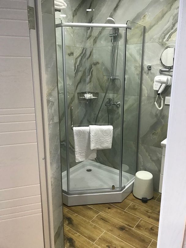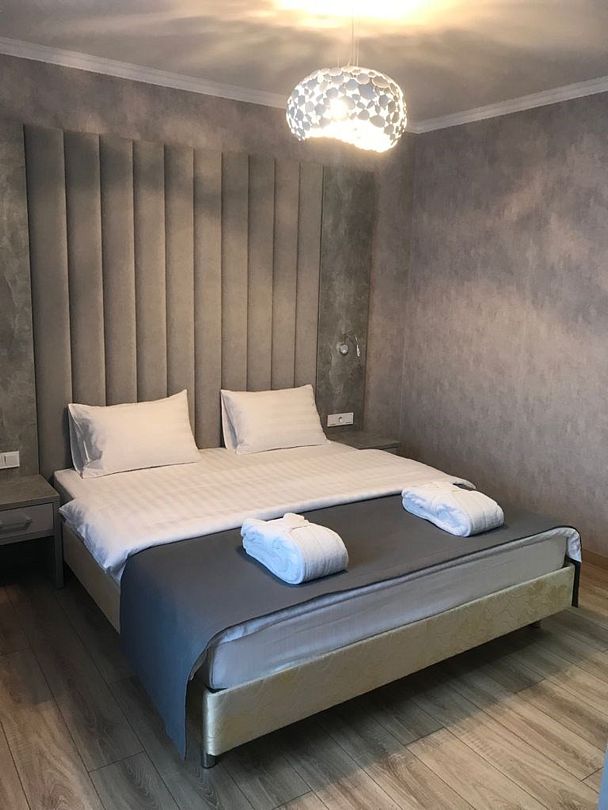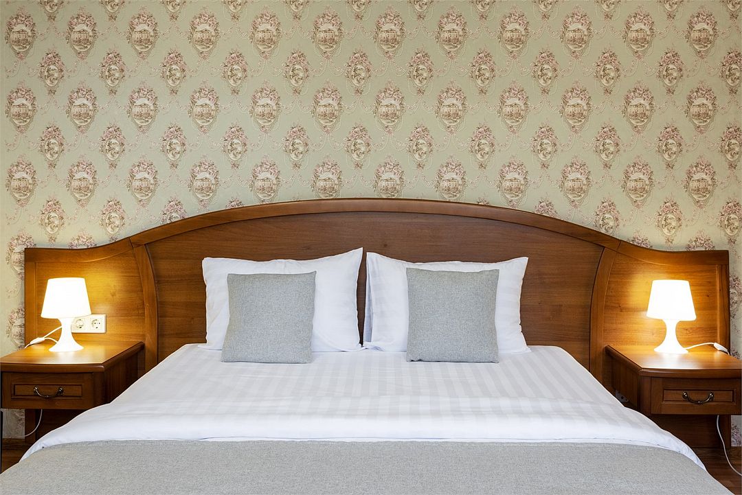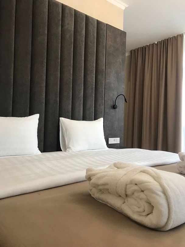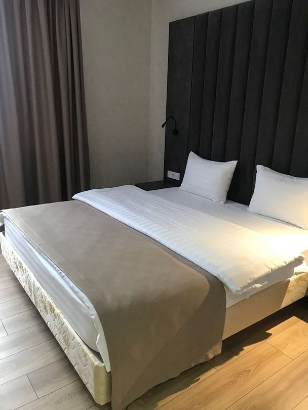 Двухместный, однокомнатный номер c балконом, двуспальная кровать с прикроватными тумбочками, шкаф, журнальный столик, туалетный столик, телевизор, холодильник. Ванная комната с комфортабельной душевой кабиной, фен, тапочки. Халаты в номерах категории Стандарт предоставляются за дополнительную плату.Услуги и удобства