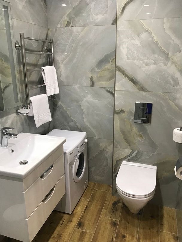 Апартаменты - 2 раздельные комнаты, кухонная зона, обеденный стол со стульями. Ванная комната - душ, санузел, банные принадлежности, стиральная машинка.Услуги и удобства