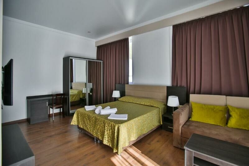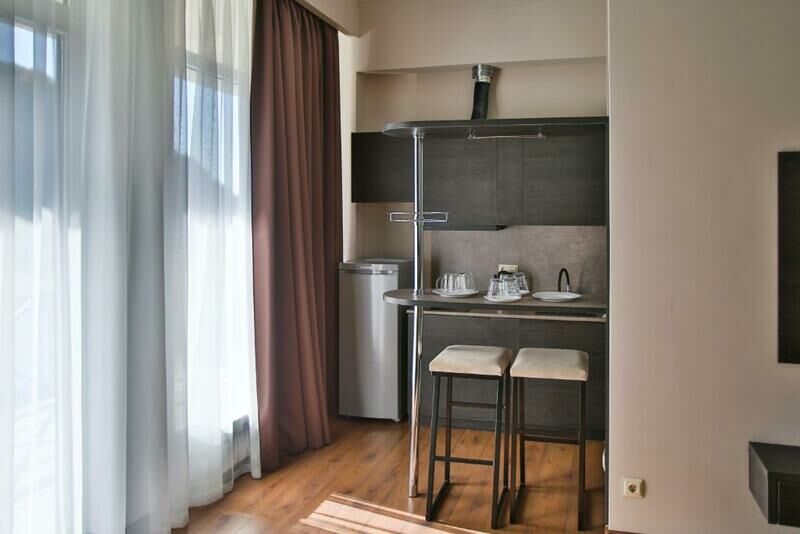Поблизости: автобусная остановка, торговый центр с аквапарком и кинотеатром, казино, кафе и рестораны. В двух километрах ближайшие горнолыжные подъемники, а до знаменитого курорта Роза Хутор можно доехать всего за 10 минут.