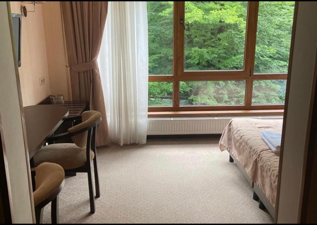 Wi-Fi, душевая кабина, санузел, двуспальная кровать, унитаз, раковина, душ, вид на город, вид во двор, туалет, вид на лес, без питомцевВ номере