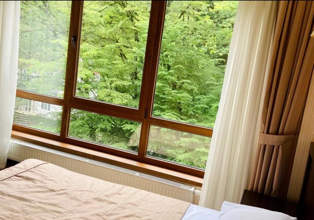 Wi-Fi, душевая кабина, санузел, двуспальная кровать, унитаз, раковина, душ, вид на город, вид во двор, туалет, вид на лес, без питомцевВ гостиничном номере