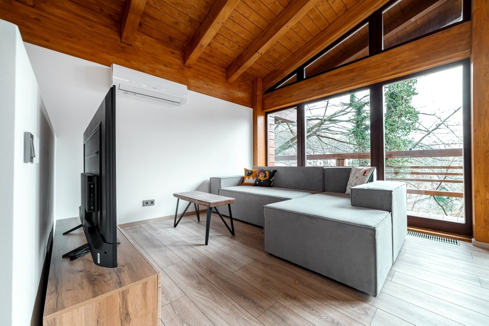 Домик с гостиной-студио и двумя мансардными спальнями (подъем по лестнице)