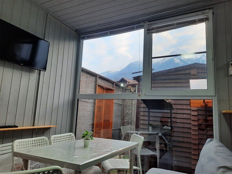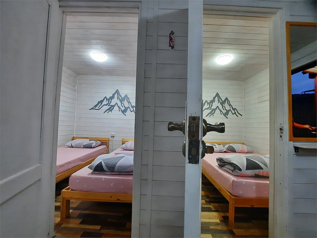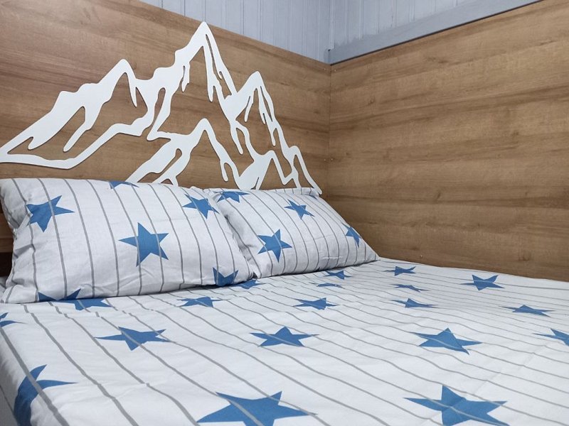 Домик, с панорамным видом на горы. Одна двухъярусная кровать и раскладывающийся диван. Номер оснащен мини холодильником, телевизором, кондиционером, электрическим чайником и микроволновой печью.
