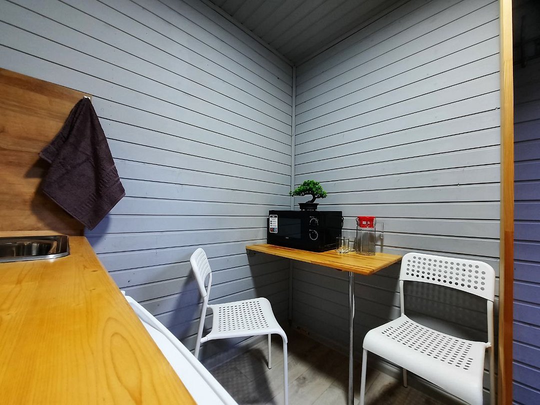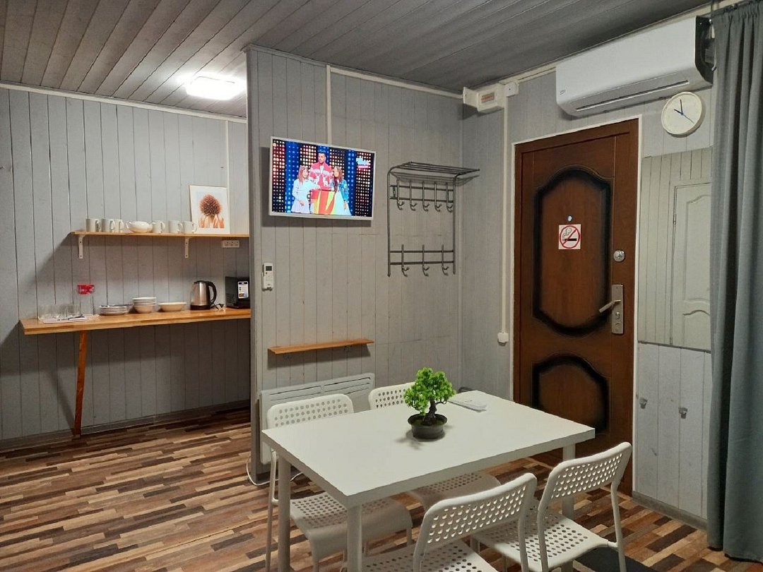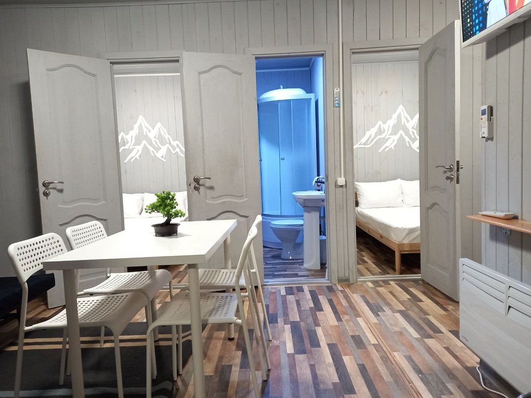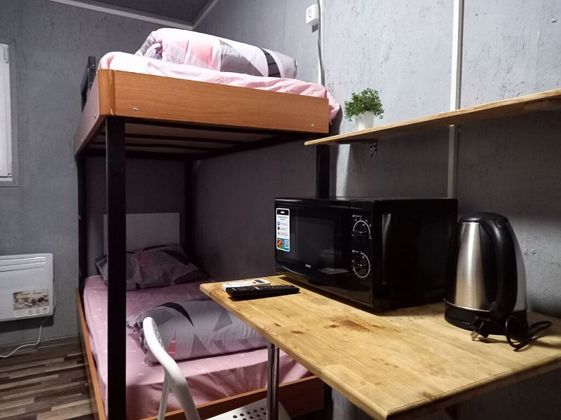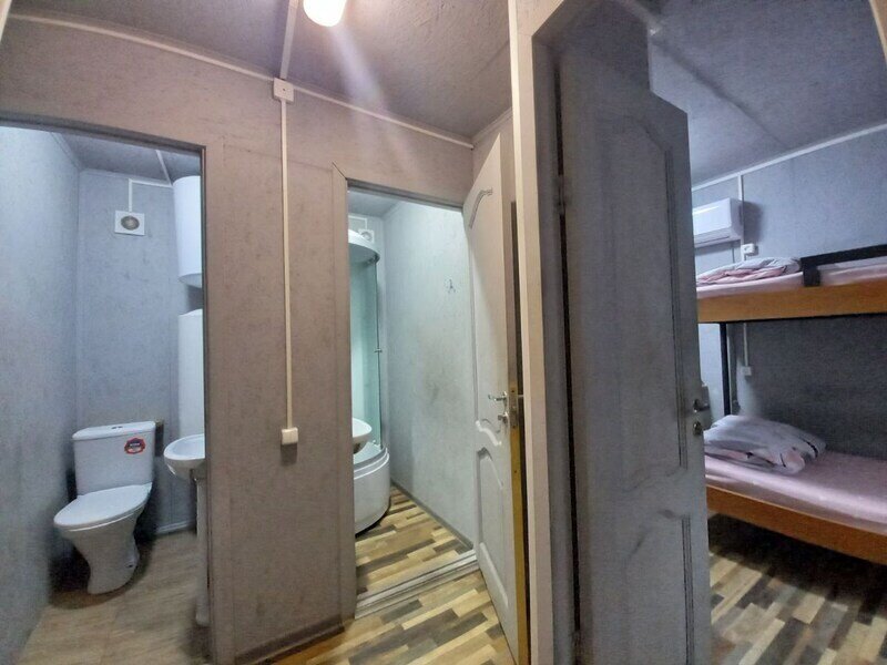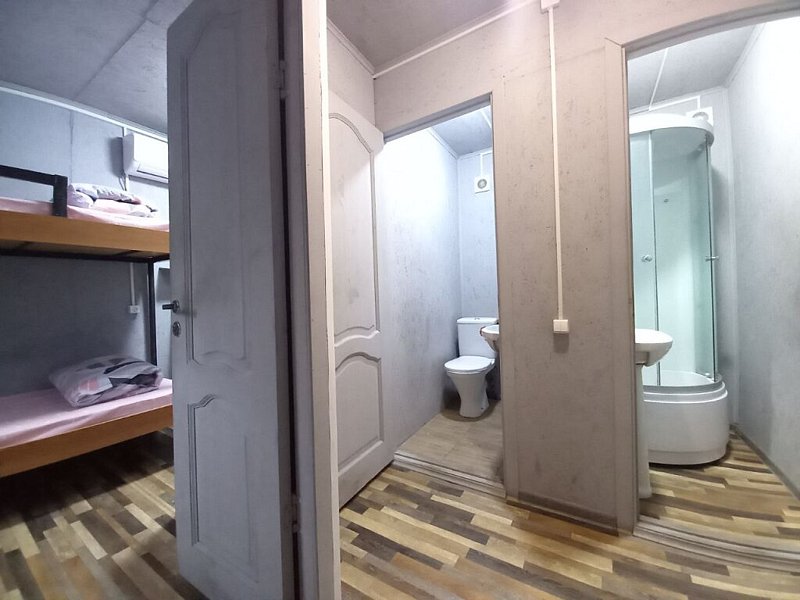 Просторный домик-хостел, две комнаты, в каждой комнате по 2 двухъярусные кровати. Каждая комната оснащена: ТВ, мини-холодильником, корпусной мебелью, электрическим чайником, микроволновой печью и всей необходимой посудой. В каждой комнате - санузел.