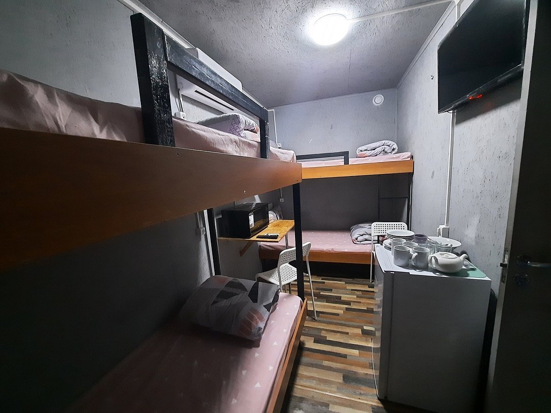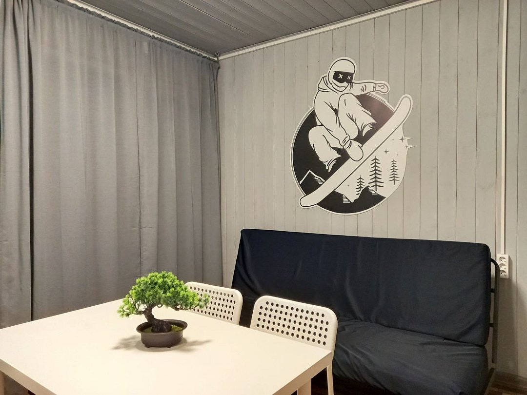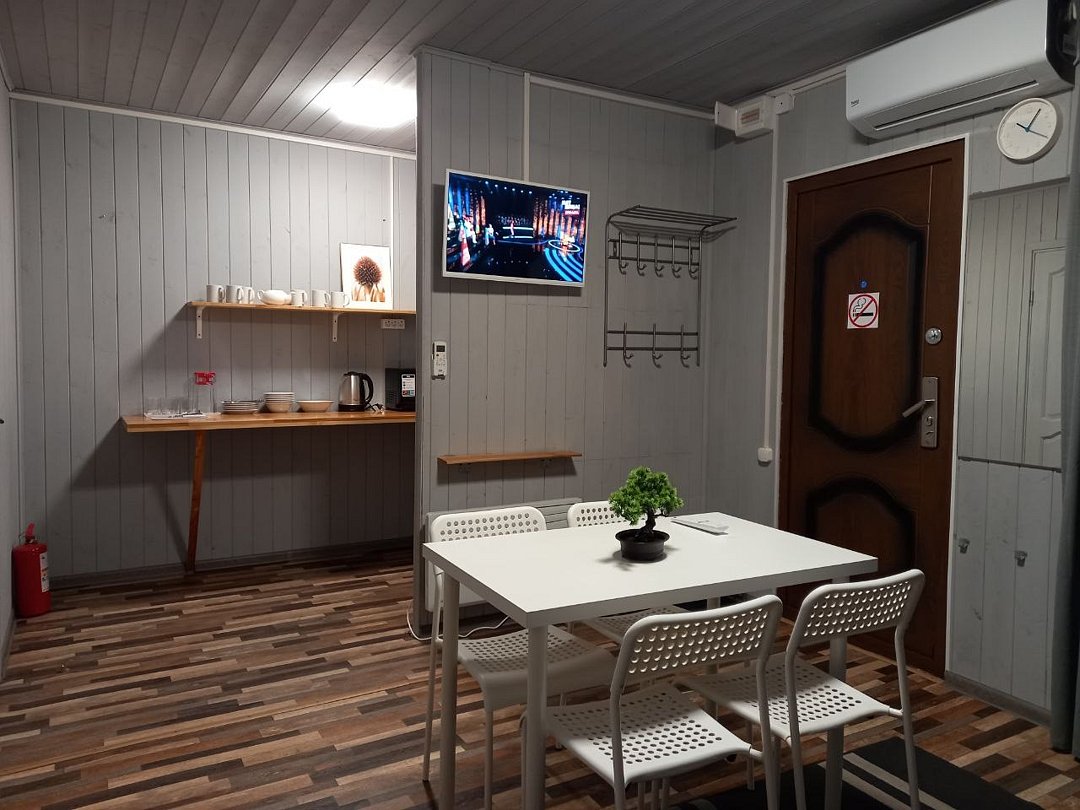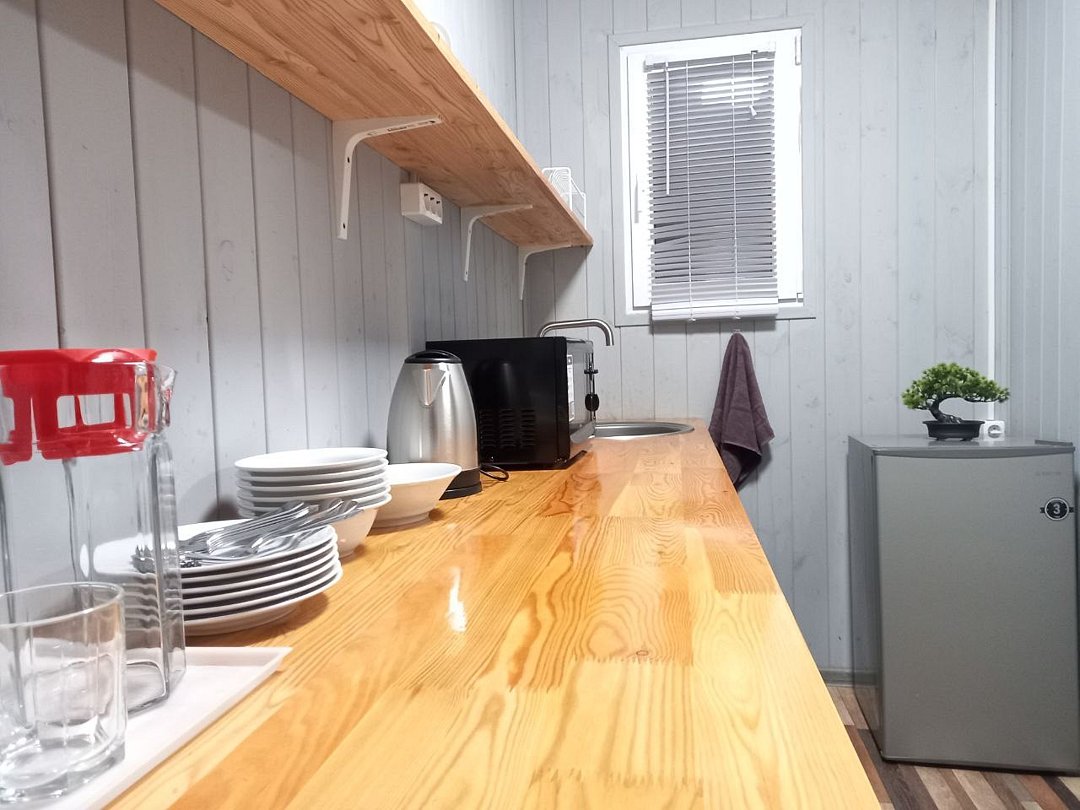 Просторный домик-хостел, две комнаты, в каждой комнате по 2 двухъярусные кровати. Каждая комната оснащена: ТВ, мини-холодильником, корпусной мебелью, электрическим чайником, микроволновой печью и всей необходимой посудой. В каждой комнате - санузел.