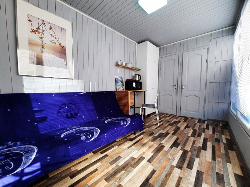 Просторный домик-хостел, две комнаты, в каждой комнате по 2 двухъярусные кровати. Каждая комната оснащена: ТВ, мини-холодильником, корпусной мебелью, электрическим чайником, микроволновой печью и всей необходимой посудой. В каждой комнате - санузел. Телефон отдела бронирования: 8 (938) 451-67-87. Дополнительные услуги: Завтрак (комплекс) - 350,00 рублей/чел. Баня на дровах - 5000.00 рублей за 1 час 45 мин (рассчитана на 4 человека)Услуги и удобства
