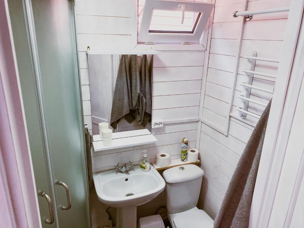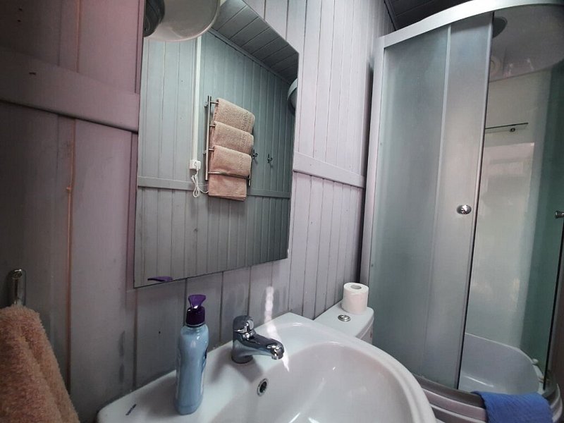 Wi-Fi, микроволновая печь, обогреватель, душевая кабина, санузел, двуспальная кровать, стулья, вешалки, зеркало, набор посуды, чайник, унитаз, раковина, отопление, отдельный вход в номер, стаканы, стол, телевизор с плоским экраном, мини-холодильникВ доме