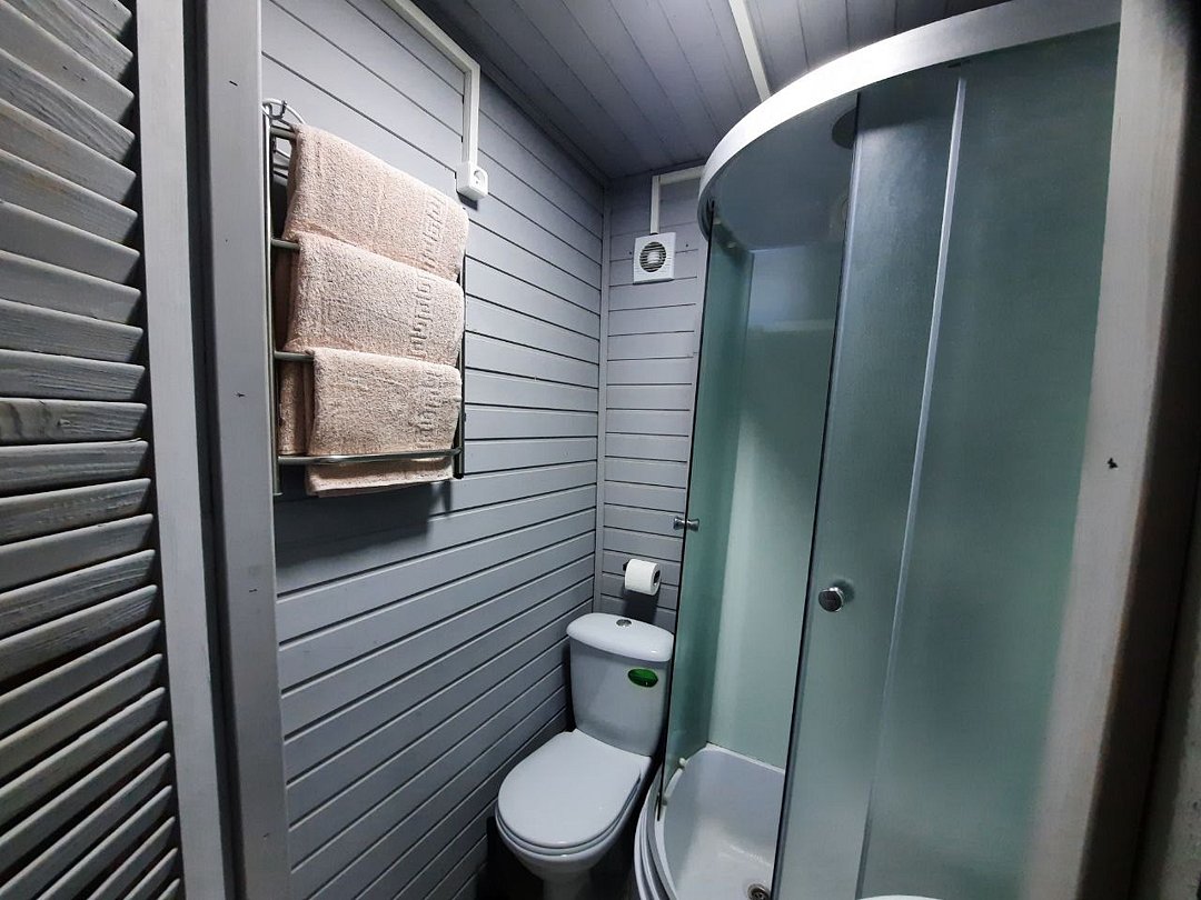 Домик предназначен для проживания компании из 3х гостей. Оснащение номера - двухъярусная кровать, диван раскладной, корпусная мебель, санузел в домике (унитаз, раковина, душевая кабинка). Телевизор и мини-холодильник в каждом домике. Телефон отдела бронирования: 8 (938) 451-67-87. Дополнительные услуги: Завтрак (комплекс) - 350,00 рублей/чел. Баня на дровах - 5000.00 рублей за 1 час 45 мин (рассчитана на 4 человека)Услуги и удобства