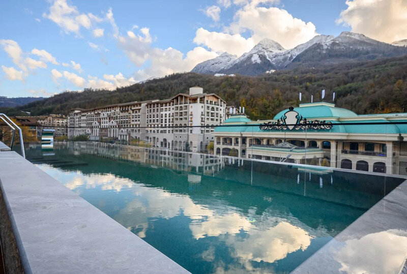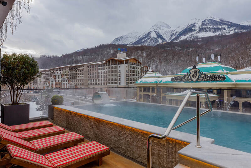 Круглогодично открытая зона аквапарка — это отдельный вид удовольствия. Помимо комплекса водных аттракционов с лабиринтами и крутыми виражами, хаммама и сауны, гости получат потрясающий вид на горы, поражающие своей красотой и величественностью.