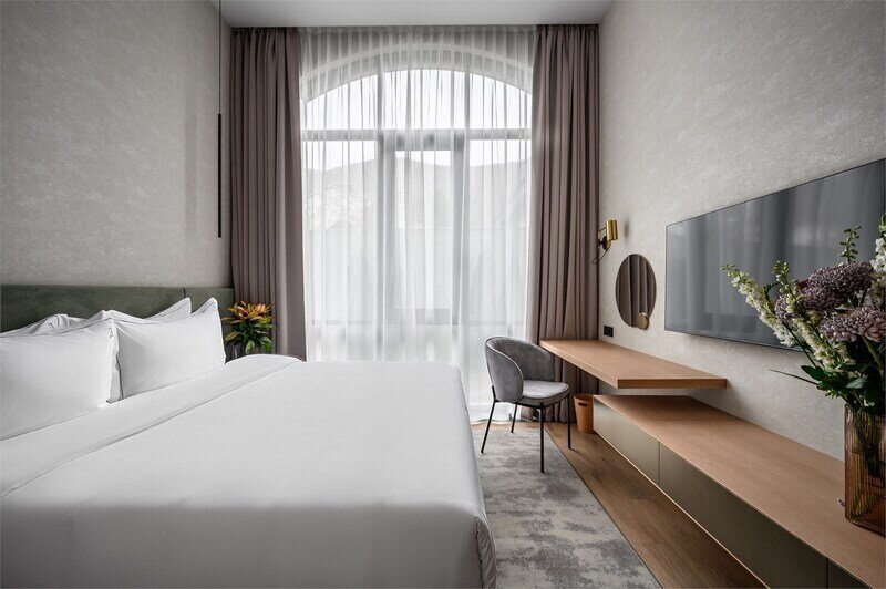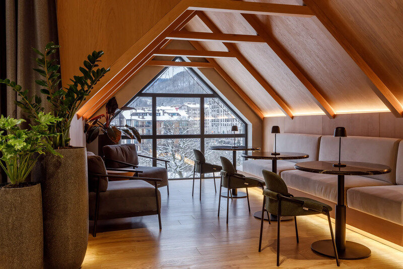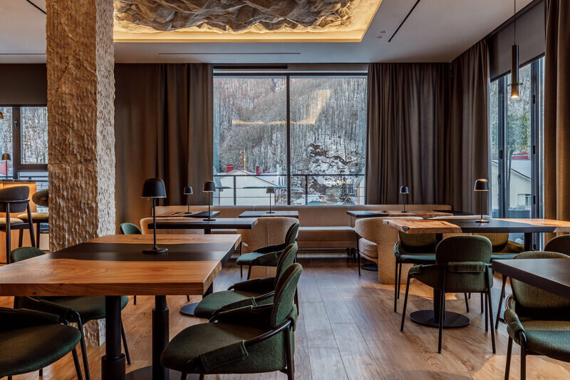 На территории отеля есть SPA-центр, библиотека с широким выбором книг и подогреваемый бассейн на крыше, где гости могут расслабиться и насладиться видом на горы. Рядом с отелем также расположен Дом-музей А.Х. Таммсааре, где можно познакомиться с историей эстонских поселенцев и творчеством известного писателя. Расстояние до аэропорта Сочи составляет 36,5 км, а до железнодорожного вокзала Роза-Хутор - 2,2 км.