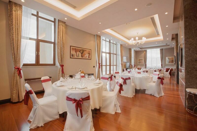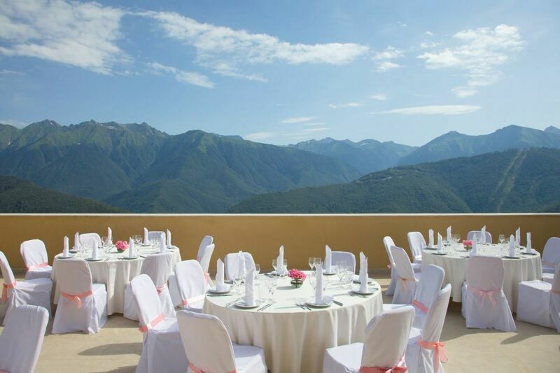 3 конференц-зала, открытая банкетная терраса, гостиная и терраса президентского люкса, вместимостью от 10 до 200 человек, для проведения деловых и свадебных мероприятий, выездных регистраций, торжеств и праздников;