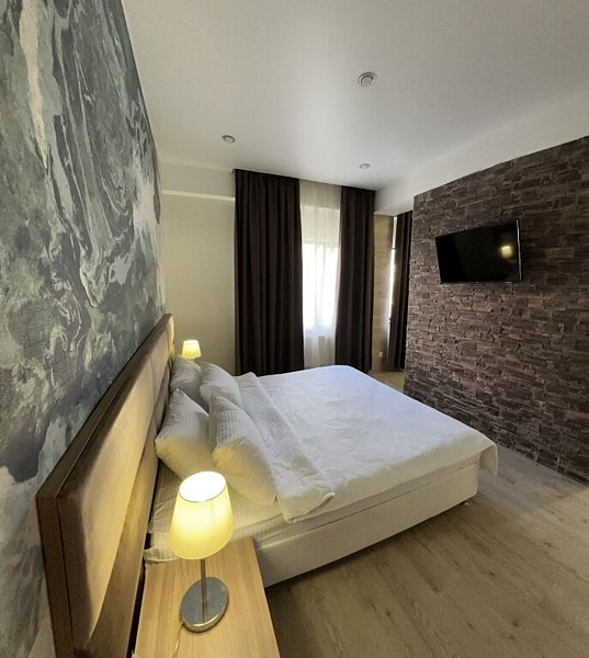 Откройте для себя уют и комфорт в просторных номерах, где Вас ждет тишина, прекрасный вид на горы и все необходимое для полноценного отдыха.