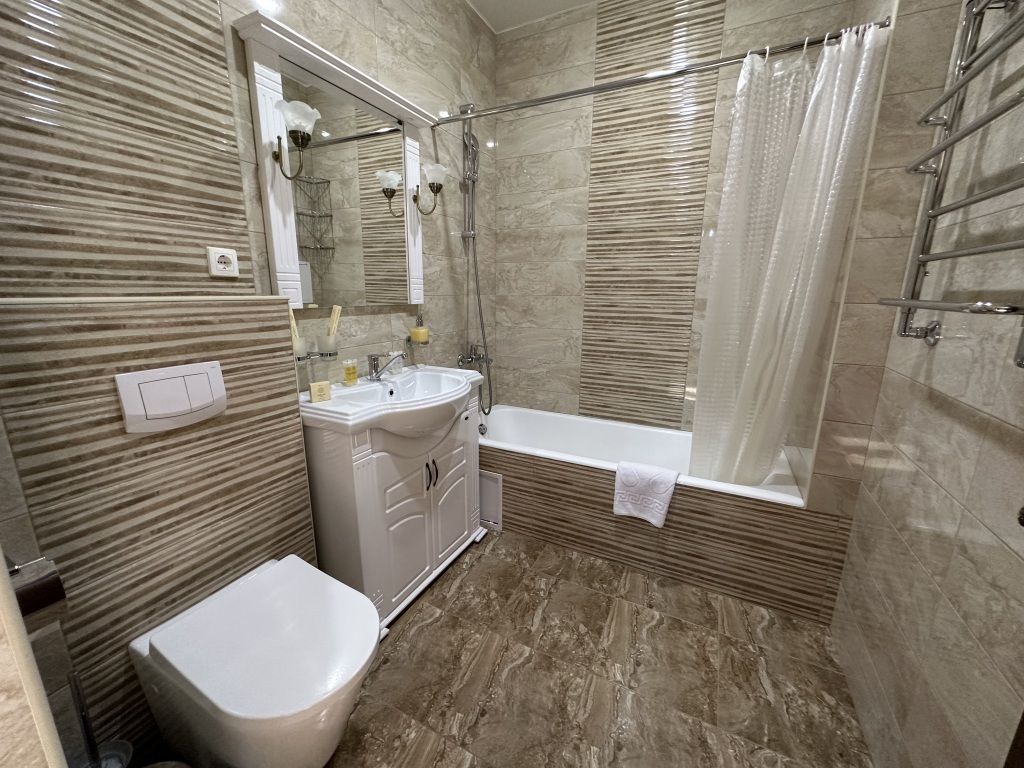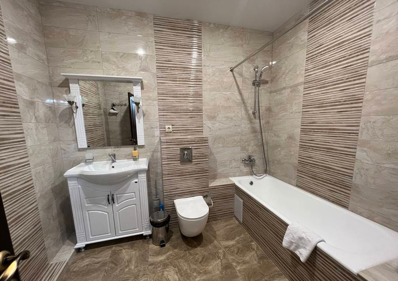 двуспальная кровать и односпальная кровать, телевизор смарт, холодильник, электрический чайник, Wi-Fi, с/у, ванна, фен.