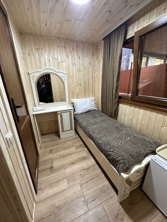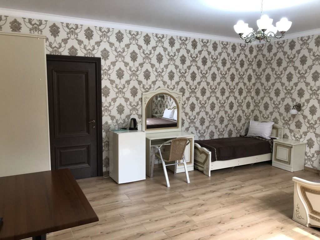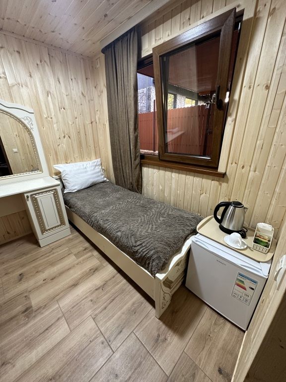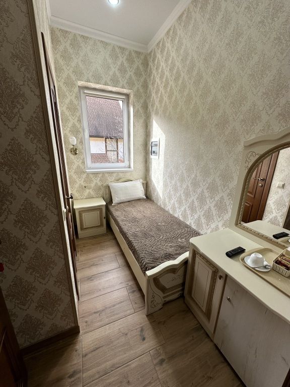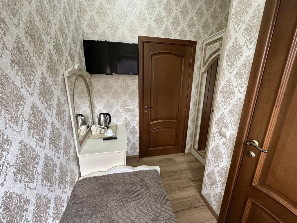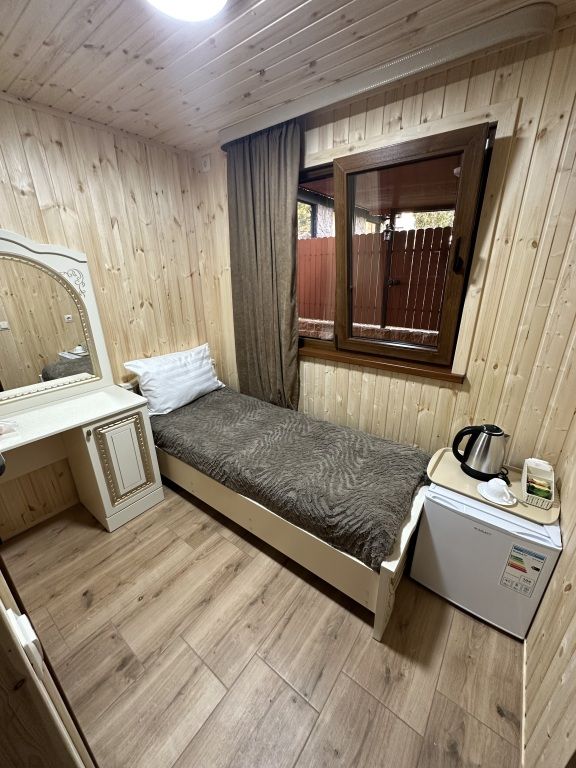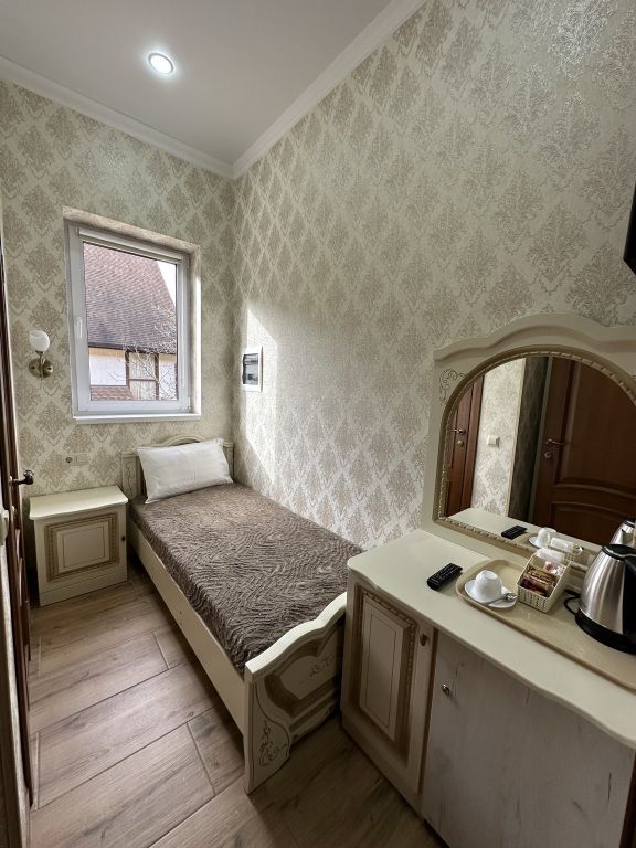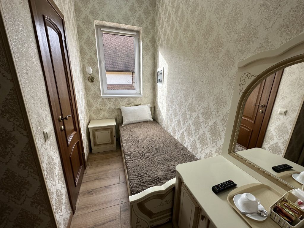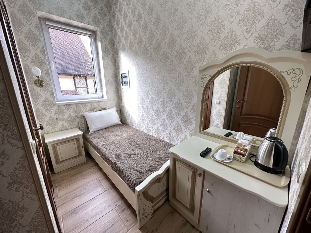 В номере: односпальная кровать, шкаф для одежды, прикроватная тумбочка, туалетный столик с зеркалом, телевизор, электрический чайник, Wi-Fi, москитная сетка. В ванной: туалет, раковина, душ, зеркало, набор полотенец, фен, туалетные средства, тапочки.